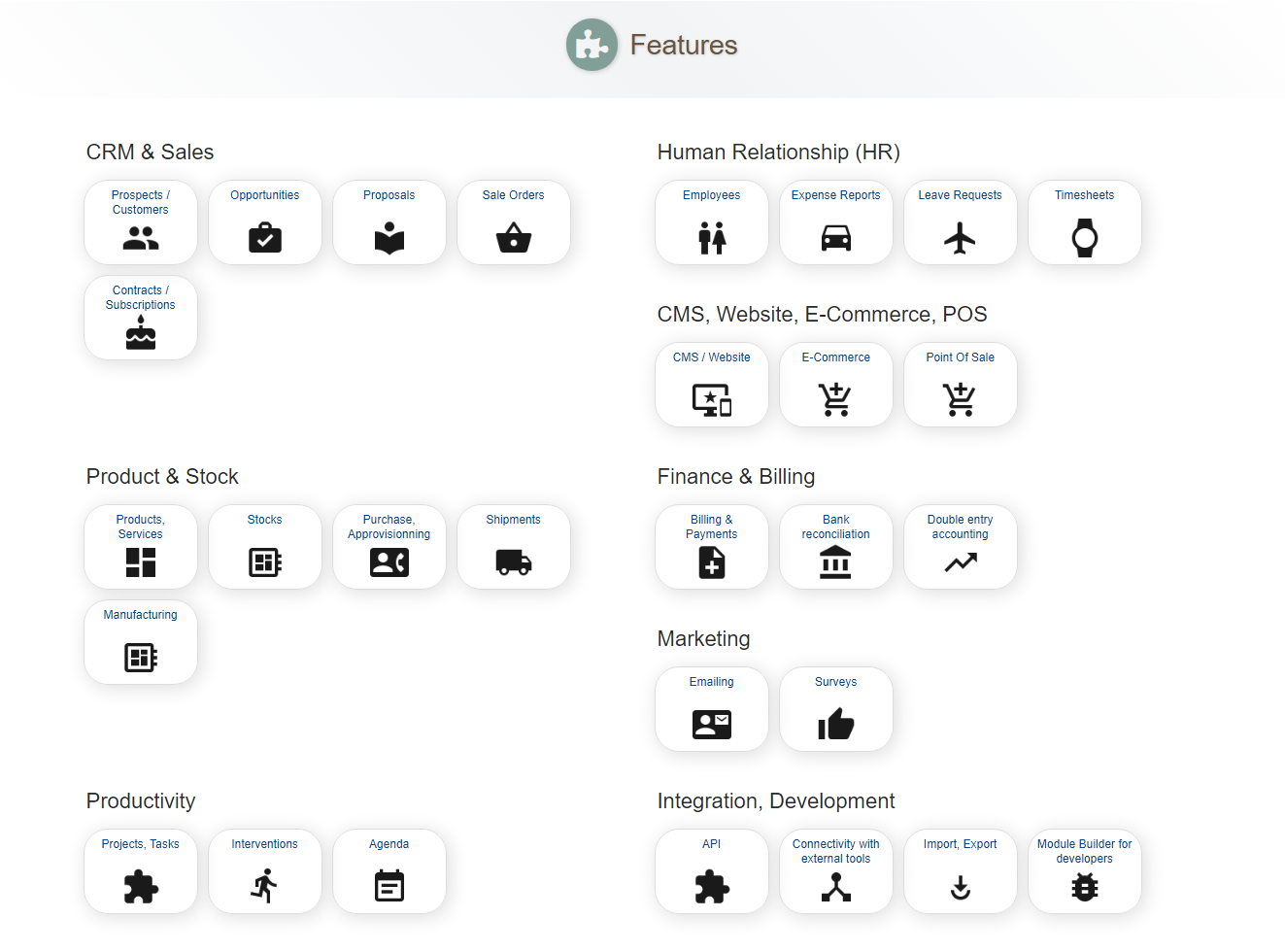 Enable only the feature you expect : Whatever your needs SSL CRM with ERP cover all those modules